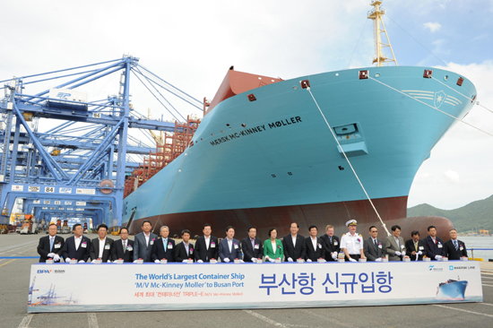 지난 7월 15일 세계 1위 컨테이너 선사 머스크 소속의 세계 최대 컨테이너선이 부산항 신항에 처음 입항했다. 6m짜리 컨테이너 1만 8천개를 실을 수 있는 '맥키니 몰러(MC-Kinney Moller)' 호는 국내 대우조선해양에서 만들었으며 총톤수 16만5천t, 길이 399m, 폭 59m, 높이 73m로 축구장 4개를 합친 크기와 비슷하다.