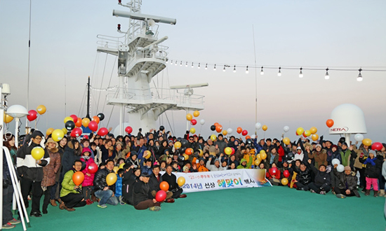 오전 5시부터 10시까지 한국해양대 선착장 → 오륙도 → 해운대 앞바다를 항해하는 가운데 일출 감상 및 새해 소망 풍선날리기, 풍물예술단 버슴새 공연 순으로 진행됐다.