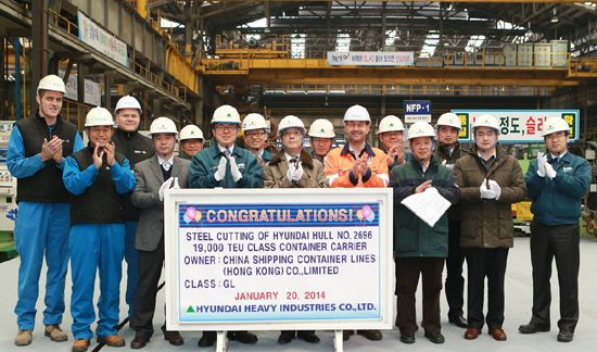 한편, 이날 착공식에는 중국 CSCL사의 펑싱궈(Feng Xing Guo) 부사장과 배종천 현대중공업 상무 등이 참석해 성공적인 건조를 기원했다.