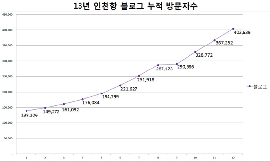 인천항만공사는 인천항의 대표적 SNS 채널인 블로그 ‘들락날락 인천항’의 2013년 누적 방문자 수가 40만 3천639명을 기록했다고 22일 밝혔다.