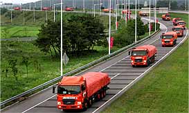 건설교통부는 19일 중국 청도에서 중국 청도시와 트럭복합일관수송(RFS*) 시범사업을 위한 양해각서를 체결하고, 12월 20일부터 2주간 시범사업을 실시하기로 합의했다.