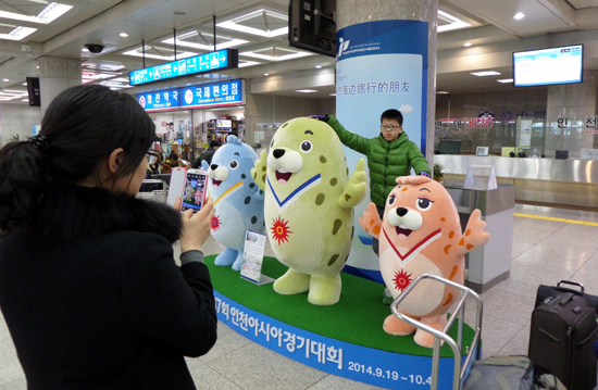 인천항 2014 아시안 게임 마스코트 조형물 설치