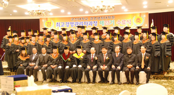 수료식에는 군산대 채정룡 총장을 비롯해서 김상묵 경영행정대학원장, 문동신 군산시장, 23기 수료생, 군경총동문회 임원 및 가족, 친지 등 200여명이 참석했다.