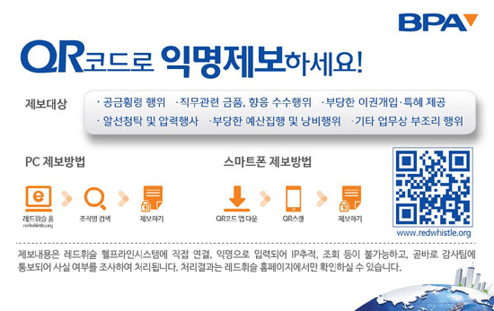 BPA 감사팀장은 “이 시스템을 통해 구성원들의 의견을 과감없이 수렴하고 BPA가 부패 없는 청렴한 조직으로 거듭날 수 있도록 노력하겠다”고 말했다.