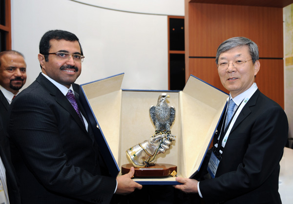 현대중공업 이재성 회장도 LNG 마케팅에 발 벗고 나섰다. 이재성 회장은 24일(월) 오전 킨텍스 행사장을 찾아 카타르 에너지부의 모하메드 빈 살레알 사다 장관을 만나 해상 가스플랜트 관련 상호 관심사와 협력방안에 대해 논의했다.