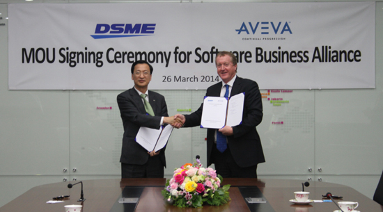 26일 대우조선해양은 서울 중앙연구원에서 영국 소프트웨어 전문 기업인 아비바(AVEVA)社와 함께 조선∙해양플랜트 설계 소프트웨어 사업의 전략적 협력을 위한 양해각서(MOU)를 체결했다.