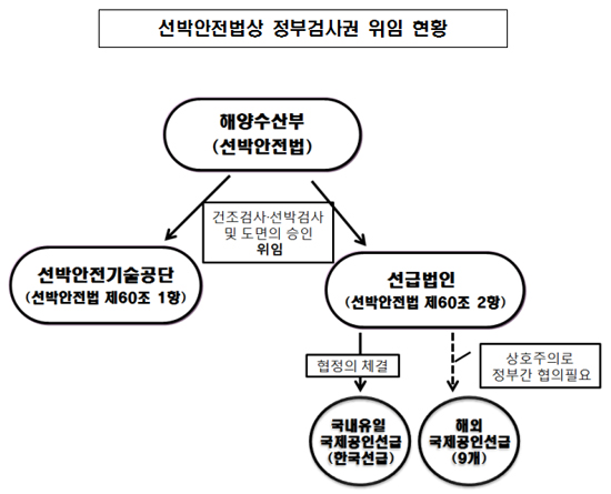 이는 한국선급이 우리나라 외에도 64개 외국정부로부터도 정부검사권을 위임받아 세계 7위 선급으로까지 진입한 전문기술단체이며 한국정부 검사권 위임을 받은 것은 공인선급으로서의 기술력을 통해서라는 이유에서라고 밝혔다.