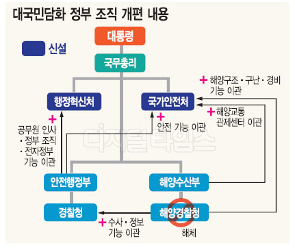국가안전처 신설 해경 해체 안행부 해양부 조직 개편