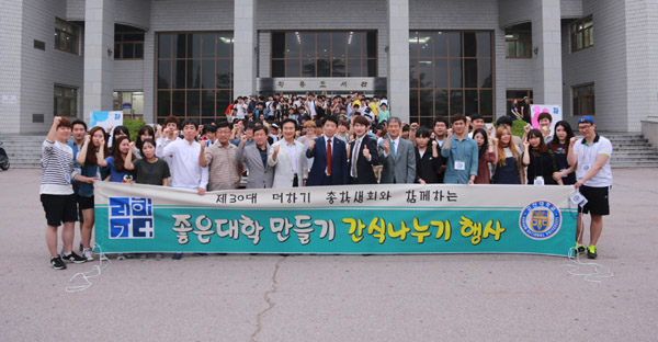 학생지원과와 총학생회가 주관한 간식나누기 행사는 “학생이 공부 잘 하는 좋은 대학 만들기” 실천 운동의 일환으로 진행되었고, 김재선 교무처장, 최상훈 학생처장, 이성룡 기획처장, 김동익 산학협력단장 등 주요 보직자와 신중복 총학생회장 등이 참가하였다.