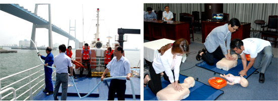 이날 훈련은 실제 상황을 가정하고 대비하기 위해 △수상 인명 구조 및 대처 방안 훈련 △응급 환자 발생시 대처 및 응급조치 훈련 △화재 발생시 화재 진압 및 인명 대피 훈련 △안내선 출항 전 안전 구호 제창 및 선박점검(구명부기, 구명부환, 발전기 등) 등의 내용으로 진행됐다.