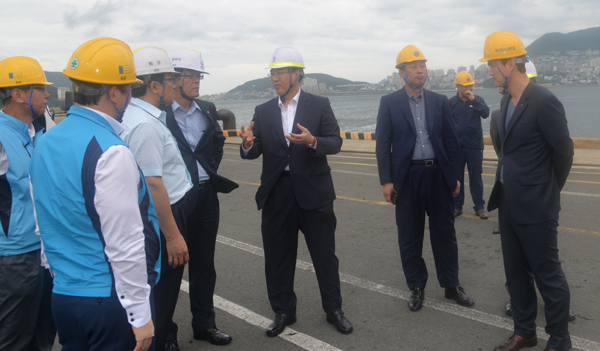 임기택 부산항만공사 사장과 김상식 항운노동조합의 위원장, 최성호 부산항만물류협회 회장은 부산항을 돌아보며 태풍 ‘너구리’ 대비 부산항의 안전에 만전을 기할 수 있도록 최선을 다하겠다고 말했다.