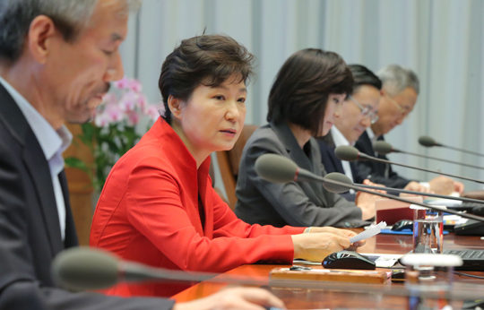 박 대통령은 이날 청와대에서 수석비서관회의를 주재(사진)한 자리에서 “최근 KDI와 한국은행 등 여러 기관들이 우리 경제 성장 전망치를 다소 하향 조정하고 있고 실제로 제가 청주 전통시장과 김포 로컬푸드 직판장 등 민생현장을 방문했을 때도 어려운 경기를 체감할 수 있었다. 이런 상황이 계속될 경우 자칫 어렵게 살린 경제회복의 불씨가 다시 꺼질지도 모른다”며 이같이 밝혔다.