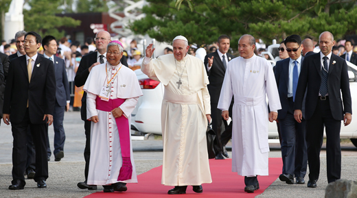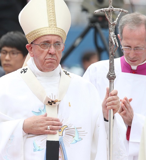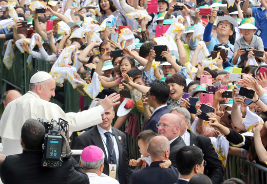 한편 이날 교황이 방한 후 처음으로 집전한 대중미사 강론에는 천주교 신자와 일반 시민 등 5만여명이 참석했다.