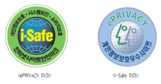 인터넷사이트 안전마크(i-Safe)와 개인정보보호 우수 사이트 인증마크(ePRIVACY)는 개인정보보호법에 근거해 시스템보안, 소비자보호, 개인정보 보호 정책 및 관리수준에 관한 각각 105개와 82개의 점검항목의 이행여부에 대해 서류 및 현장심사를 통한 종합평가로 일정 기준을 넘는 사이트에만 1년간 안정성 인증마크를 부여하는 제도이다.