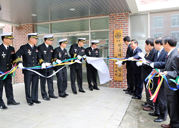 한국해양대학교(총장 박한일)는 19일 오전 해군교육사령부 진남관 별관에서 해양군사대학(학장 김용환) 강의동 현판식을 가졌다.