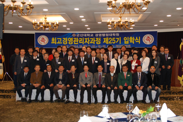 군산대학교(총장 나의균) 경영행정대학원 부설 최고경영관리자과정은 23일 군산대학교 리츠프라자호텔에서 최고경영관리자과정 제 25기 입학식을 개최하였다.