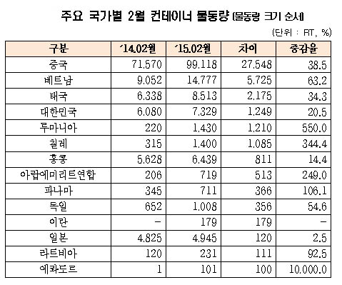 물동량의 주요 증가원인은 중국 물동량이 감소하는 춘제의 영향이 지난해에는 2월 내내 지속됐지만, 올해는 2월 중반부터 시작되면서 그 영향이 축소된 점이 꼽혔다. 또, 올들어 중국·일본·동남아권과 연결되는 3개의 신규항로 개설로 인한 항로 서비스 확대 효과가 작용된 것으로 풀이된다.
