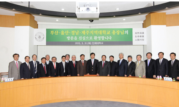 부산·울산·경남·제주 지역 대학교 총장협의회(회장 박한일 한국해양대 총장)는 지난달 31일 부회장교인 인제대학교(총장 차인준) 본부 14층 회의실에서 ‘2015년 3월 월례회’를 개최했다.