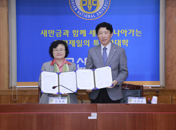 군산대학교(총장 나의균)와 주택관리공단(사장 안옥희)은 21일 군산대학교 본부 2층 제 1소회의실에서 대학과 공공기관의 공생발전을 위한 업무협약식을 체결하였다.