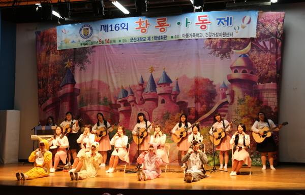 16회 황룡아동제는 아동가족학과(학과장 구수연)가 매년 군산지역 어린이집 유아를 초청해 동극, 뮤지컬, 율동 등의 공연을 펼치는 아동문화공연이다. 올해에는 군산지역 30여개 어린이집 유아들과 보육교사, 학부모 등 1500여명이 관람했다.