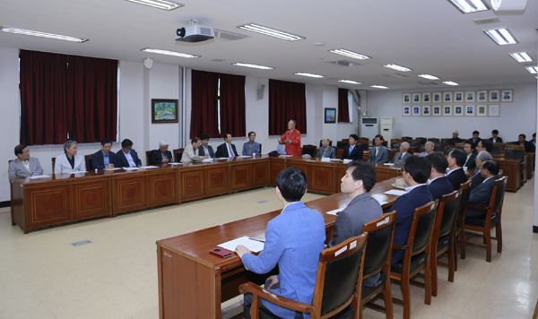 군산대학교 해양과학대학(학장 이상호)은 14일 해양과학대학 1호관 대회의실에서 스승의 날 기념 “2015학년도 퇴직교원 초청 간담회”를 개최했다. 간담회에는 이상호 해양대학장을 비롯해 9개 학과장 및 전임학장, 퇴임 교수 등 40여명이 참석했다.