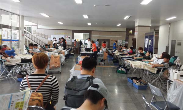 헌혈을 하기 위해 학생들이 줄을 지어 기다릴 정도로 많은 관심을 받은 이날 행사에는 재학생 400여 명이 참가했다.