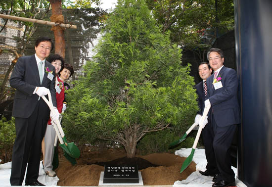 장 만 해양환경관리공단 이사장은 기념사를 통해 “이번 신사옥 이전을 단순한 물리적 공간 변화가 아닌, 양적 성장에서 질적 성장으로 한 걸음 나아가는 도약의 장으로 삼겠다”며, “오늘을 계기로 우리 공단 임직원 모두가 새롭게 각오를 다지고 푸른 해양의 미래가치를 창조하는 국민기업으로서 더욱 풍요로운 미래를 개척해 나갈 것”이라고 밝혔다.(사진:우측 장만 공단이사장, 좌측 김영석 해양부 차관 등이 기념식수를 하고 있다)