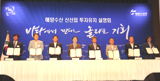 해양수산부(장관 유기준)는 7월 13일(월) 오후 3시부터 5시까지 대한상공회의소에서 「해양수산 신산업 투자유치 설명회」를 개최하고, 해양심층수 응용기술과 개발에 관한 협약식등을 가졌다.