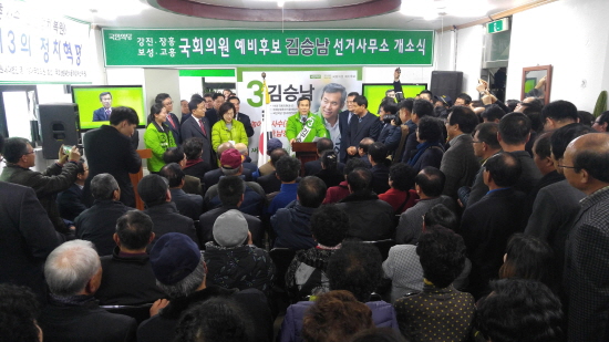 김승남 국회의원(국민의당, 전남 강진·장흥·보성·고흥)이 3월 5일(토) 오후2시 전남 고흥군 소재 선거사무소에서 안철수 공동대표, 박지원 의원, 박주선 최고위원, 유성엽 의원의 축하 지지 영상과 권은희 국회의원(광주 광산을), 손광은 후원회장(시인, 전남대 명예교수), 김금자 故박상천 대표 사모님, 김진관 강진·장흥·영암 가락종친회 연합회장, 송귀근 前광주시 행정부시장, 김학영 前청와대행정관, 공영민 前기획재정부국장, 개그맨 홍기훈, 강진군·장흥군·보성군·고흥군의 4개 군의 기관단체장, 광역의원·기초의원, 재경·재광·재순 향우회원 등 3,000여명의 지지자들이 행사장 안팎을 발디딜 틈 없이 가득 메워 성황리에 개소식을 개최했다.
