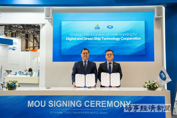 한국선급은 10월 22일 부산 코마린 2025 현장에서 에이치라인해운과 해운산업의 디지털 전환과 친환경 기술 개발을 위한 기술협력 양해각서를 체결했다고 밝혔다.
