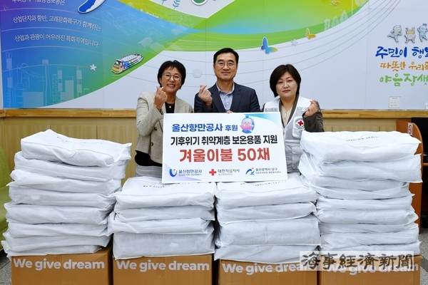 울산항만공사와 대한적십자사 울산지사가 30일 야음장생포동 행정복지센터에서 독거어르신 50가구에 동절기 이불을 전달했다.