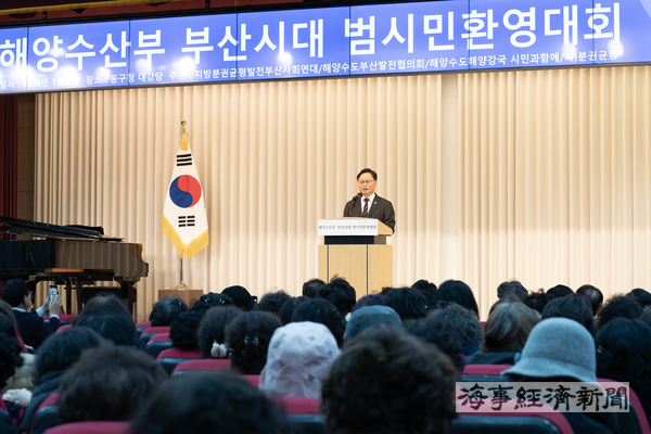 김성범 해양수산부 장관 직무대행이 8일 부산광역시 동구청 대강당에서 열린 ‘해양수산부 부산시대 범시민환영대회’에 참석했다.