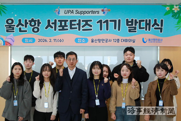 울산항만공사(UPA, 사장 변재영)는 11일 오전 공사 12층 대회의실에서 '2026년 제11기 울산항 서포터즈' 발대식을 갖고 본격적인 활동에 들어간다고 밝혔다.