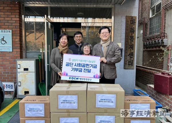 해양환경공단(이사장 강용석)은 지난 12일 설 명절을 맞아 마라복지센터(서울시 송파구 소재)에 사회공헌기금을 전달하고, 시설 운영에 힘쓰고 있는 관계자들에게 감사와 응원의 메시지를 전했다고 13일 밝혔다.
