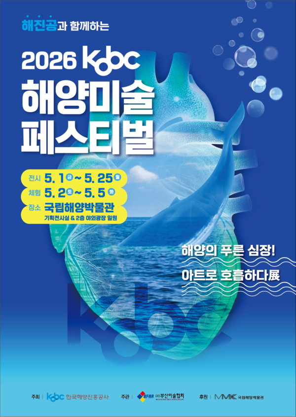 한국해양진흥공사는 5월 1일부터 25일까지 부산 영도구 국립해양박물관에서 ‘2026 코비씨(KOBC) 해양미술 페스티벌’을 개최한다고 밝혔다.