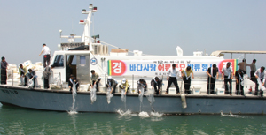 이날 행사에는 지역 유관기관 관계공무원, 각 시,군 수산업경영인연합회 회원 및 어업인대표, 그리고 일반시민 등 50여명이 참석한 가운데, 넙치 종묘 10,000여 마리를 방류했다.