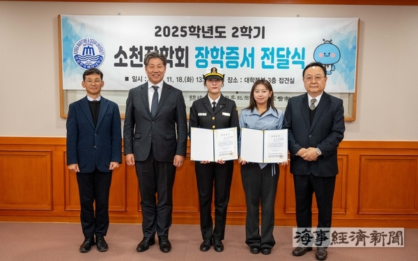 국립한국해양대학교(총장 류동근)는 지난 11월 18일 대학본부에서 ‘2025학년도 2학기 소천장학회 장학증서 전달식’을 개최했다고 밝혔다.
