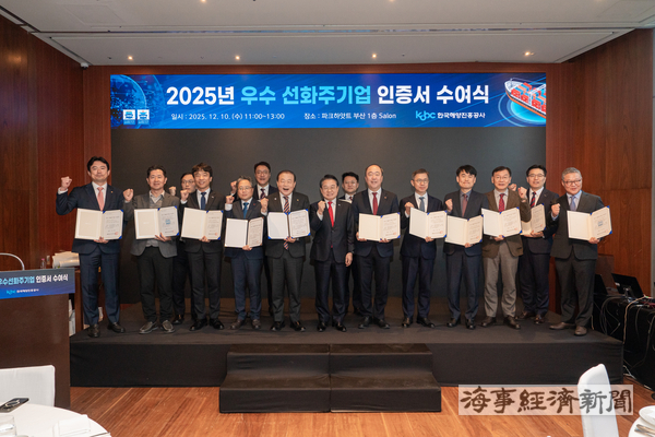 해진공은 해운 물류 산업의 공정하고 안정적인 거래질서 확립과 선사와 화주 간 상생협력 강화를 위한 우수 선화주 인증제도를 통해 2025년 인증기업 13개사를 신규 및 재인증했다고 11일 밝혔다. 이로써 2020년 제도 운영을 시작한 이래 누적 인증기업은 총 39개사(선사 14개사, 화주 25개사)로 늘어났다.
