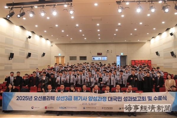 한국해양수산연수원(원장 김민종)은 19일 ‘2025년도 오션폴리텍 상선3급 해기사 양성과정 대국민 성과보고회 및 수료식’을 열고 교육생 125명이 과정을 마쳤다고 22일 밝혔다.