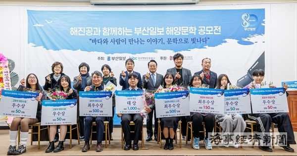 한국해양진흥공사(사장 안병길, 이하 해진공)는 ‘한국해양진흥공사와 함께하는 부산일보 해양문학 공모전’을 마무리하고 14일 부산일보 대강당에서 시상식을 개최했다고 15일 밝혔다. 시상식에는 수상자와 가족, 심사위원 등 60여 명이 참석했다.