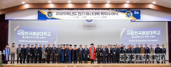 국립한국해양대는 1월 28일 교내 대강당에서 ‘2025학년도 해사대학 전기 학위수여식’을 개최했다고 밝혔다. 행사에는 류동근 총장과 채영길 총동창회장, 해운선사 및 유관기관 관계자 등이 참석해 졸업생들의 출발을 축하하고 격려했다.