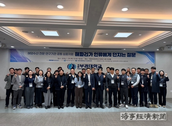 공단은 1월 29일 국립부경대학교에서 해양생태계 관리와 지속 가능한 해양자원 활용을 위한 ‘해양수산 전문 연구기관 공동 심포지엄’을 개최했다고 밝혔다. 이번 행사는 해양환경공단이 주최하고 해양생태기술연구소(주)와 국립부경대학교가 주관했으며, 연구기관과 관계기관 전문가들이 참석해 해파리 관련 주요 현안을 공유했다.