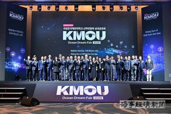국립한국해양대학교(총장 류동근)는 1월 27일 시그니엘 부산 그랜드볼룸에서 산학연 협력 성과공유회 ‘KMOU Ocean Dream Fair 2026’을 개최했다고 30일 밝혔다. 이번 행사는 부산광역시, 부산RISE혁신원, 국립한국해양대 RISE 사업단이 주최·주관했으며, 지역기업·기관 관계자 등 약 250명이 참석했다.