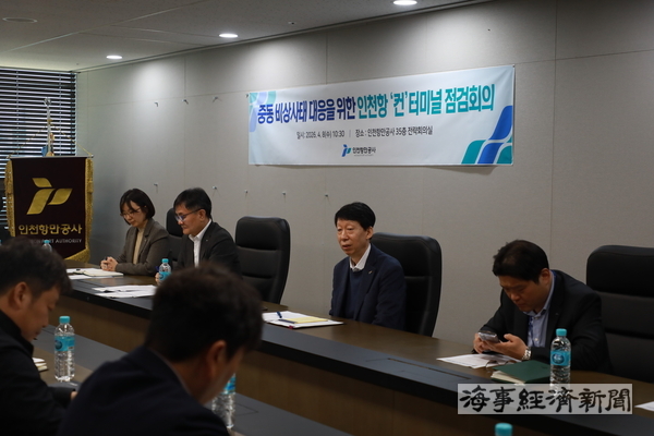 인천항만공사가 최근 중동 사태 장기화에 따른 글로벌 해상운송 불확실성에 대응하기 위해 인천항 컨테이너터미널 운영사들과 점검회의를 열고 현장 대응체계 점검에 나섰다.